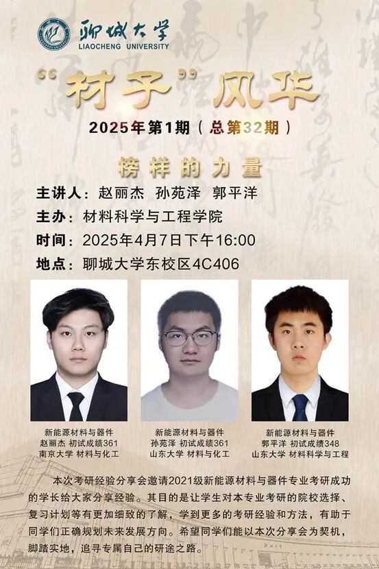 为深化学院学风建设,科学引导考研规划,助力学生精准把握备考方向,2025年4月7日,英国365集团于东校区4#C406成功开展考研经验分享交流会之新能源材料与器件专业。本次交流会特邀2021级新能源材料与器件专业优秀考研学子赵丽杰、孙苑泽、郭平洋担任主讲嘉宾,团委辅导员梁艺璇老师作为主持人,2022级新能源材料与器件专业全体学生参与学习。